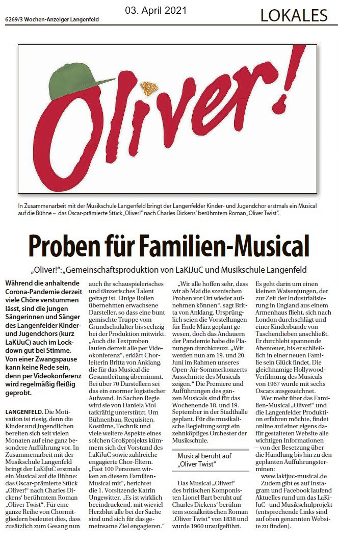 Trotz Pandemie: Proben für Familien-Musical „Oliver!“ laufen auf Hochtouren